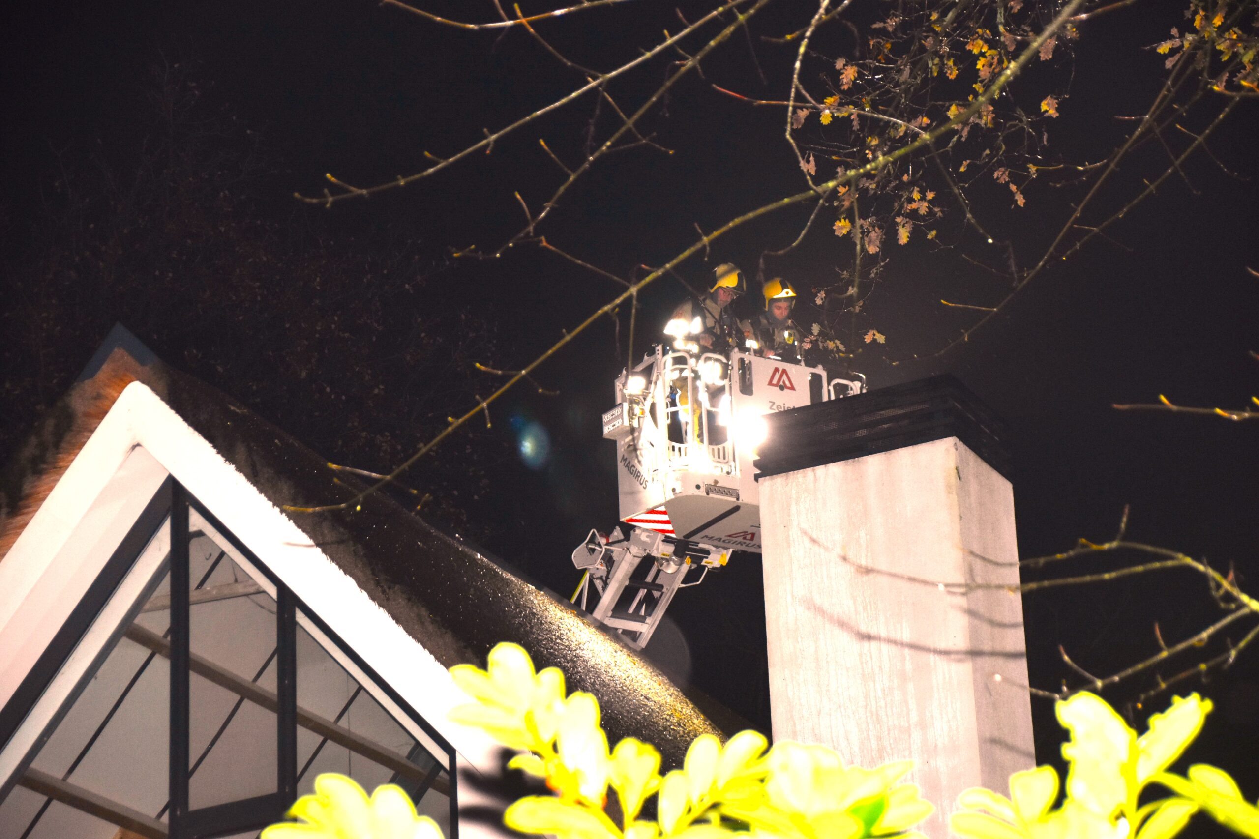 Met één straal bestreed de brandweer het vuur vanaf de grond. Dat was doeltreffend. Het vuur en de vonken kregen daardoor geen kans om het riet aan te tasten. Controle vanaf de ladderwagen en metingen met de warmtebeeldcamera maakten duidelijk dat het blussen effectief was geweest.